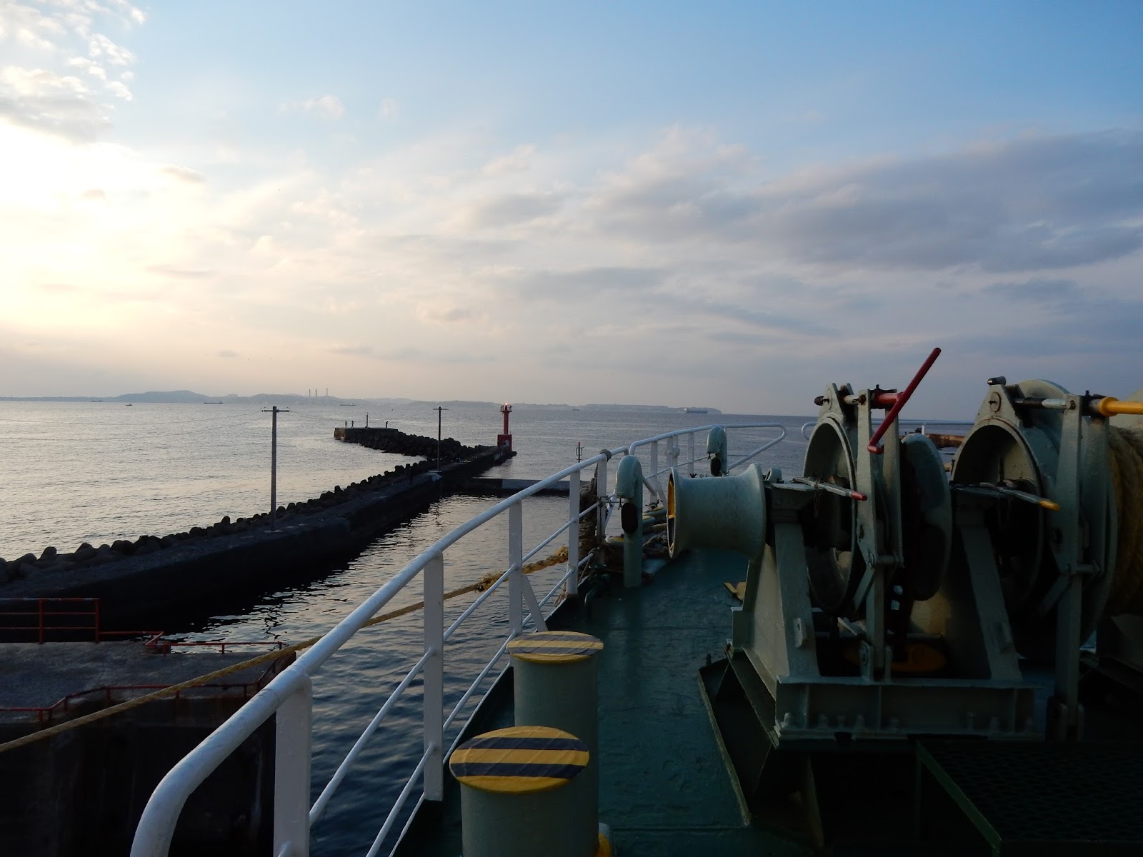 今日は乗船客(車両)が多いので、定刻の17:20を少し遅れて金谷港を出港です。▼