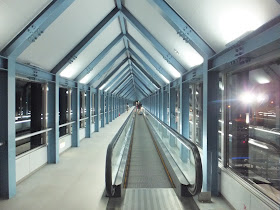 車窓には線路跡のような遊歩道も見られるのですが、本当にそうだかは判りません。途中下車して検証する必要があります。小学校、バスの待合室など、このあたりの公共施設はすべてオレンジ色のカラーリングで統一されていました。