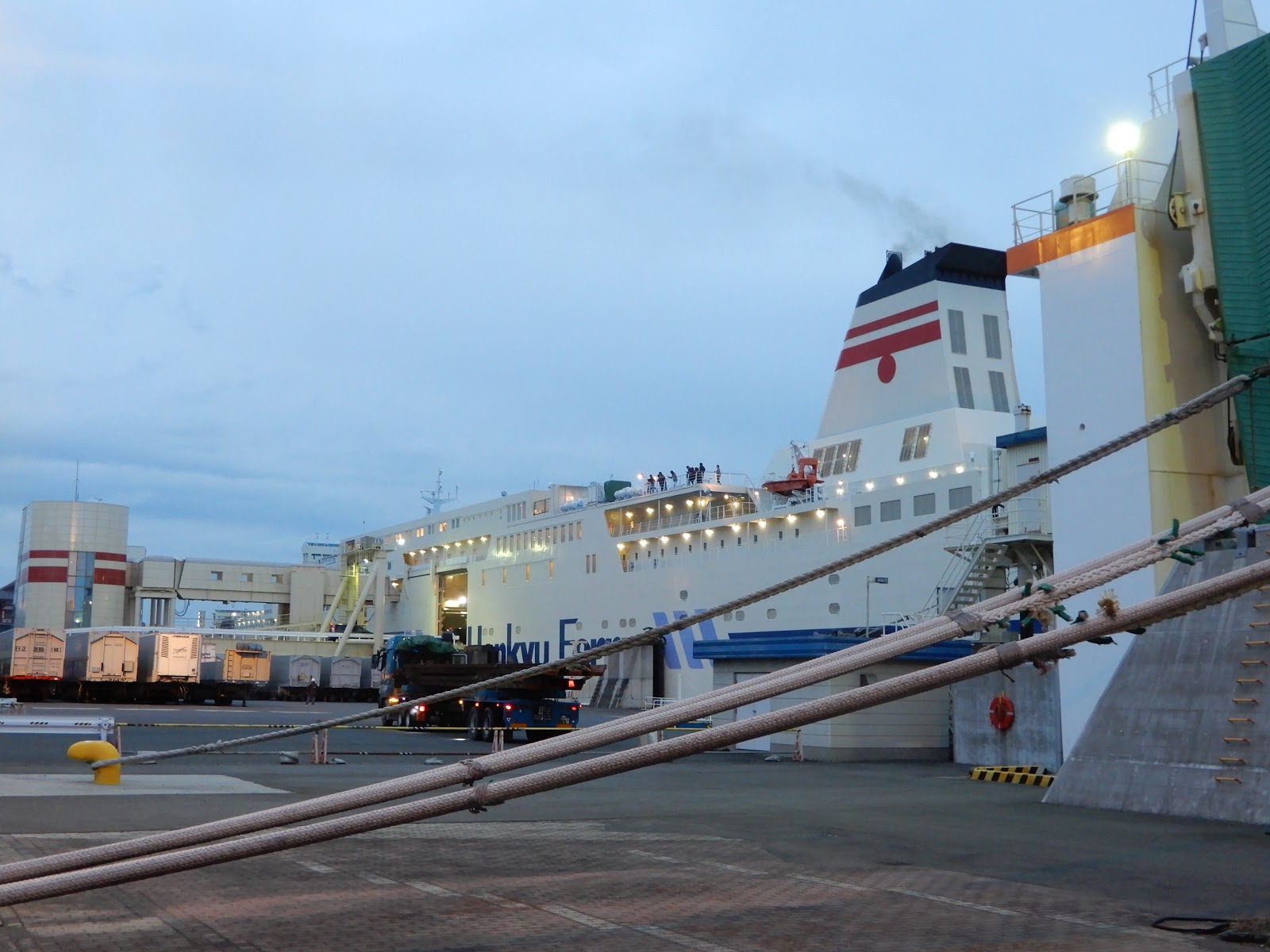 「目覚めれば、大阪。」。19:50発名門大洋フェリー「フェリーおおさか2」が出航の時を待っています。▼
